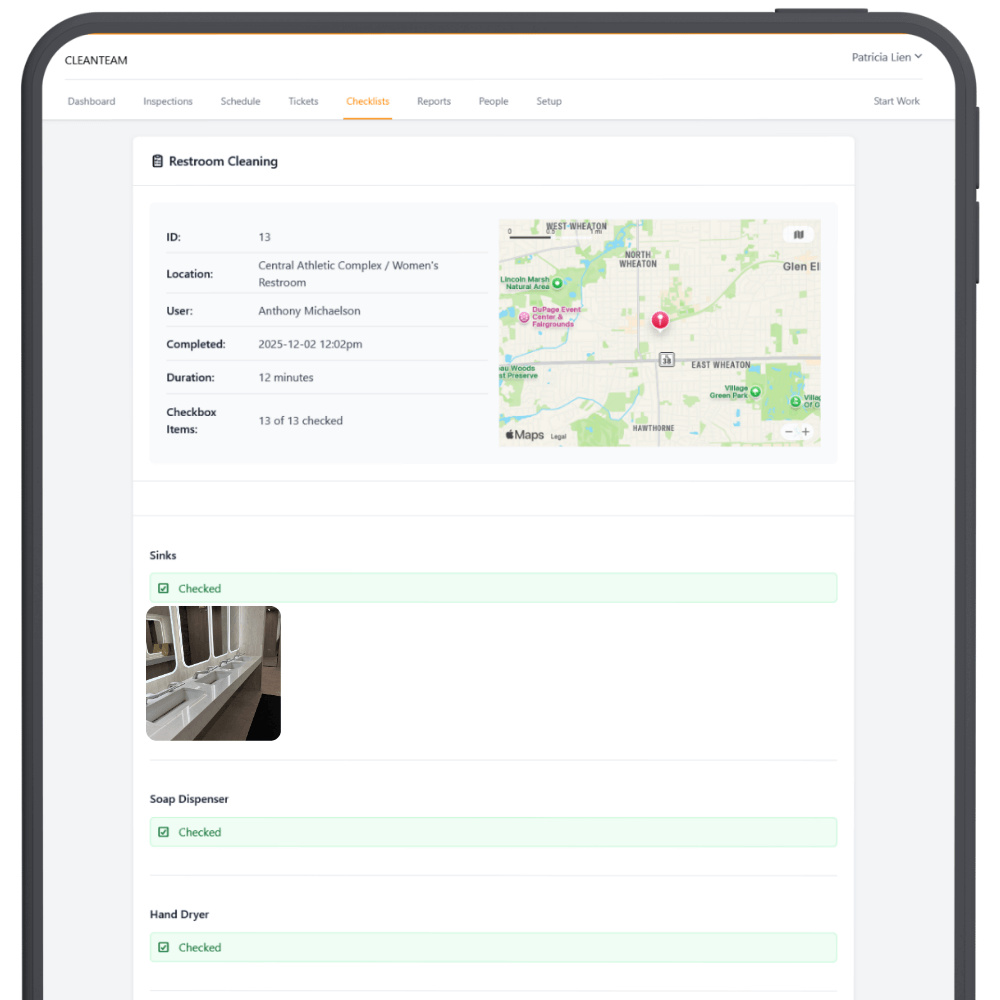 You can see all of the work being done onsite through a dashboard of all your checklists. Individual reports give more information on each submission, including any photos or comments: